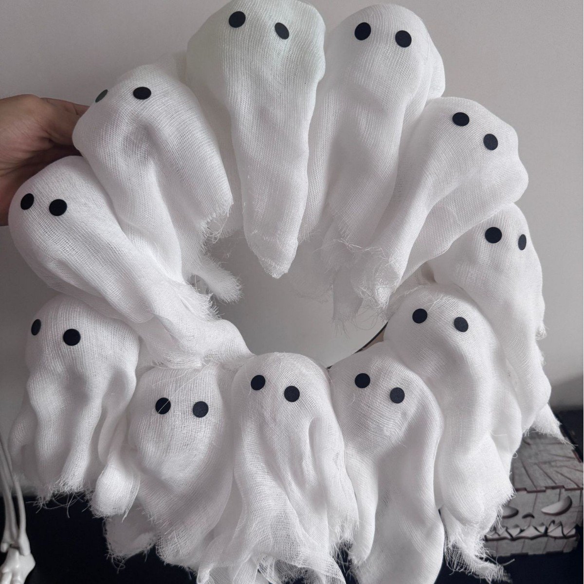 【Halloween Theme】: This glowing ghost wreath is perfect for setting a playful yet spooky mood during Halloween.