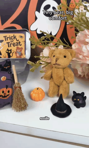 With its pocket-sized design, this teddy bear easily fits into any space, from cozy homes to party displays. Its compact size allows flexible decorating options and a cute addition to your Halloween setup.